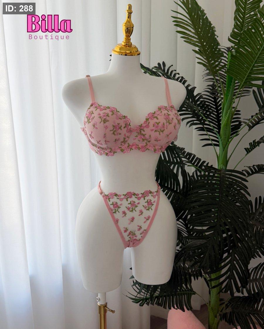 طقم داخلي دبل بوش منقش ورد باللون الزهري💕
