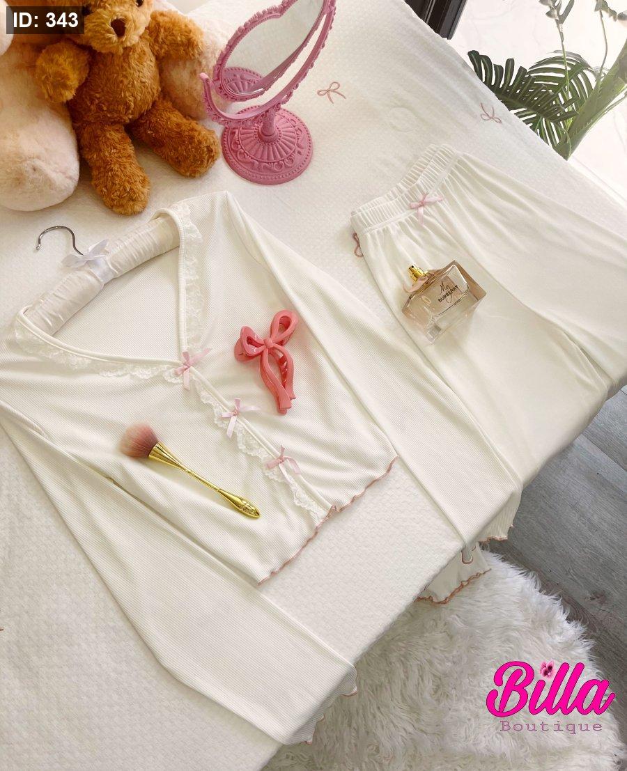 بيجامة قطن باللون الابيض ازرار فيونكات والكواليتي خرافية