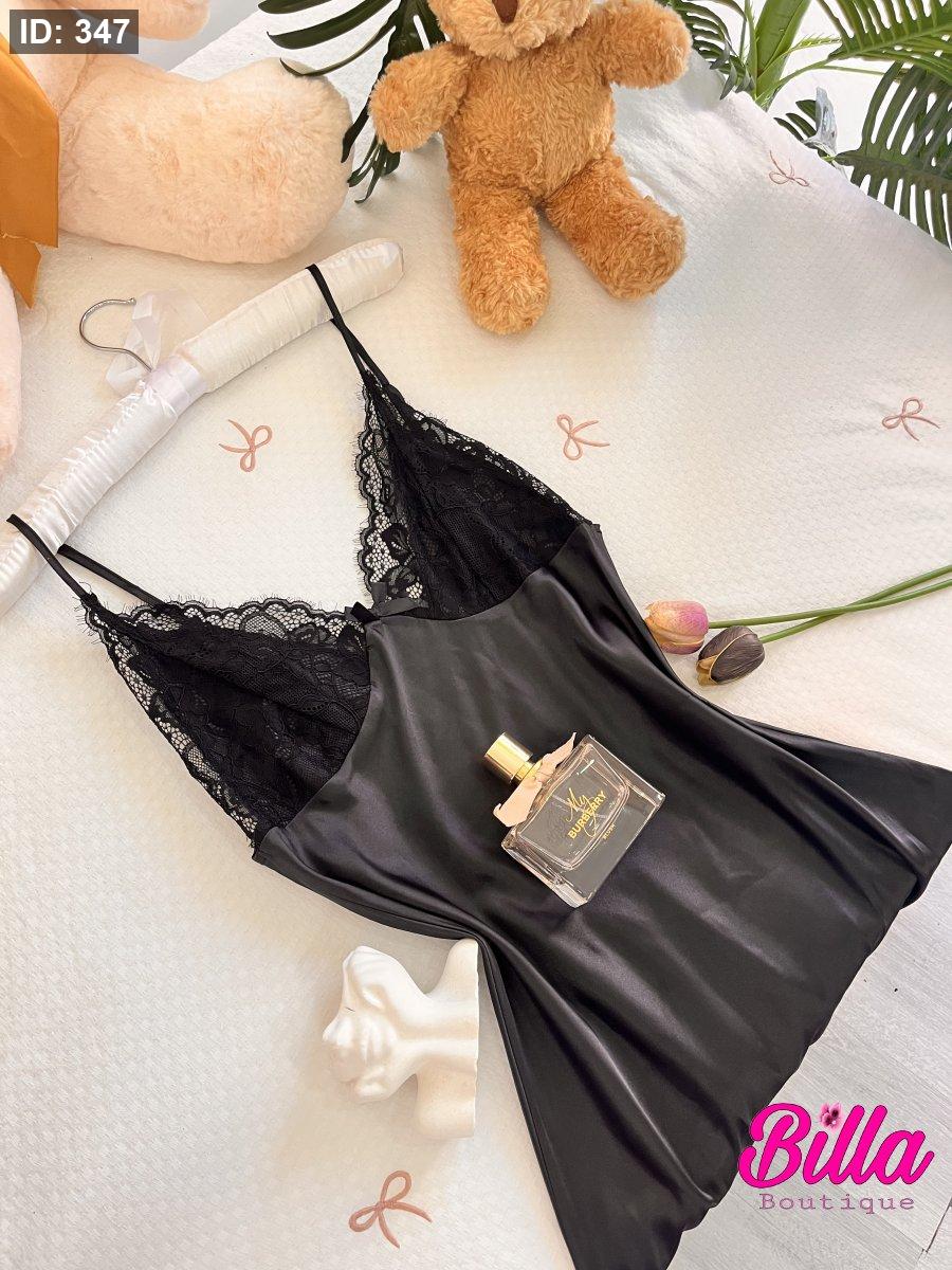 فستان اسود ستان ناعم مع فتحة بالظهر💕