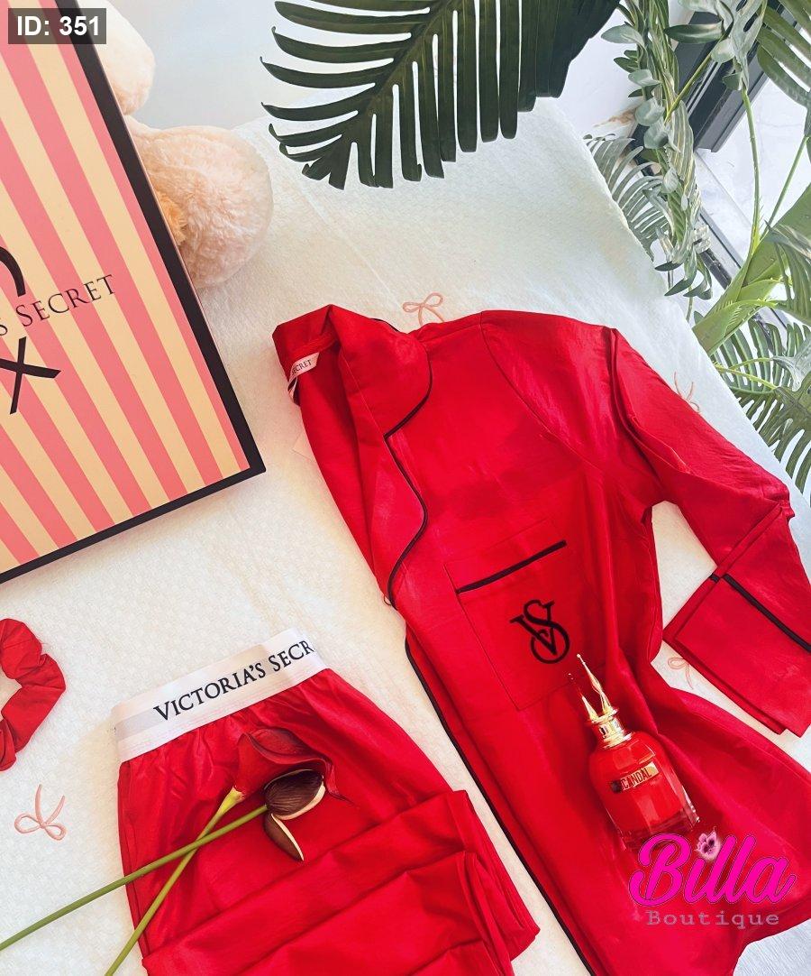 بيجامة فيكتوريا سيكريت بنطلون باللون الاحمر قطنية مع بوكس