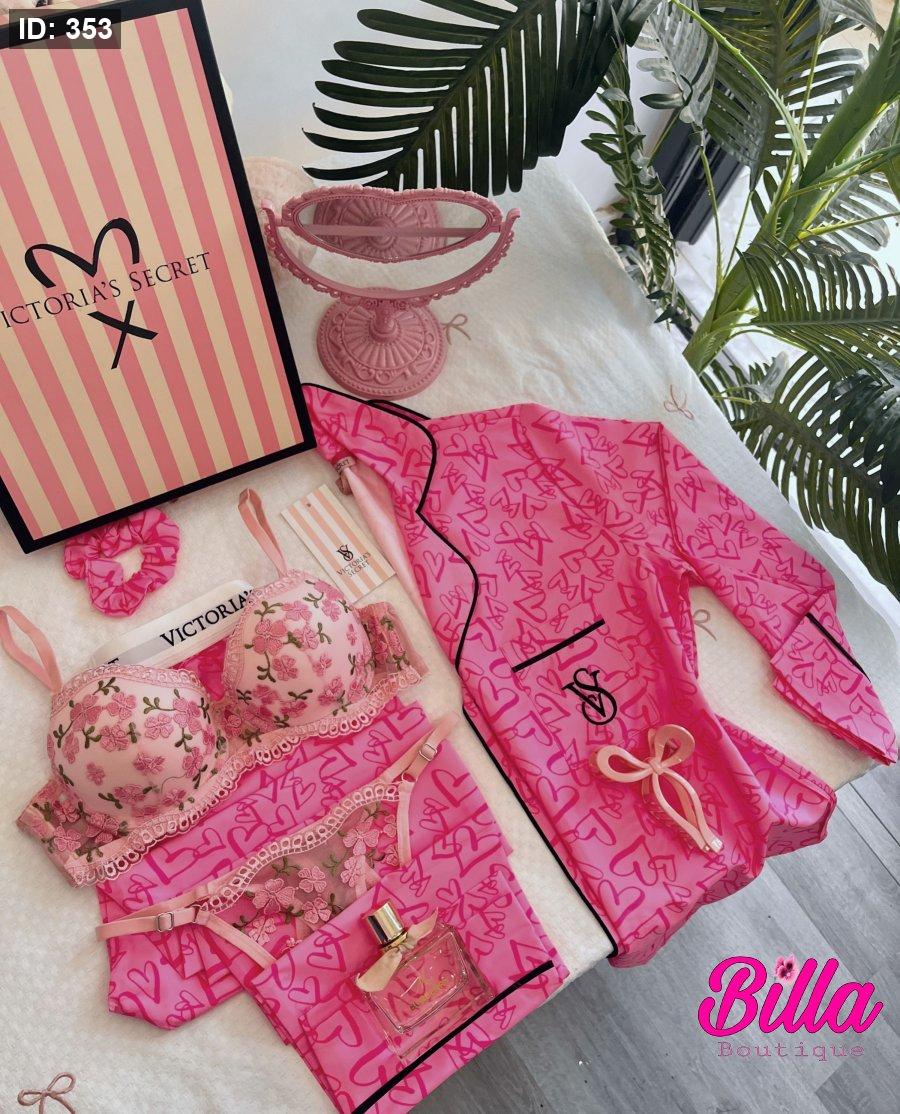 بيجامة فيكتوريا سيكريت قماشة باردة مع بوكس منقش قلوب 💕