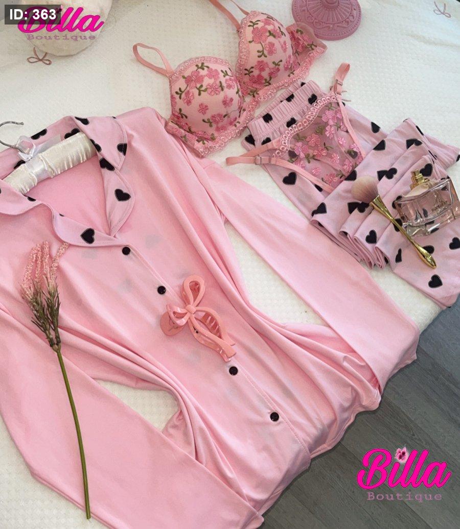 بيجامة قطنية خريفية كم طويل منقشة قلوب والكواليتي🔥