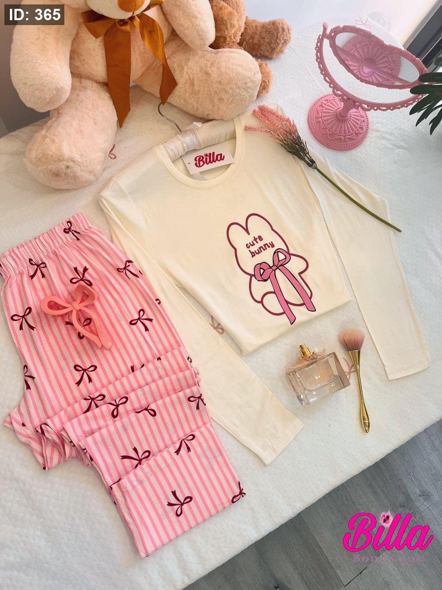 بيجامة قطنية كم طويل مع بنطلون 💕