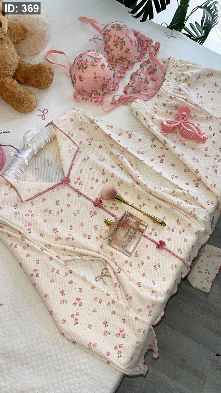 بيجامة خريفية ناعمة منقشة ورد زهري والكواليتي🔥