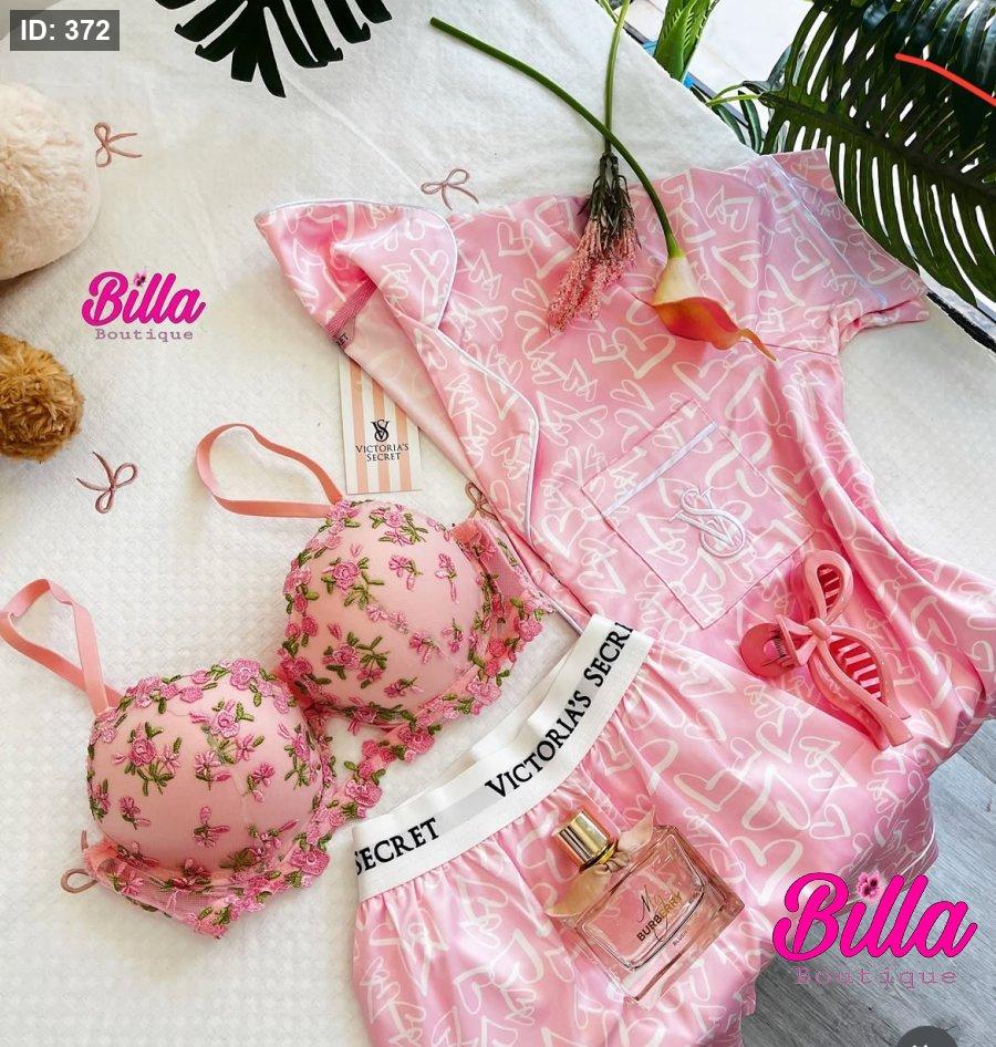 بيجامة فيكتوريا سيكريت منقشة قلوب