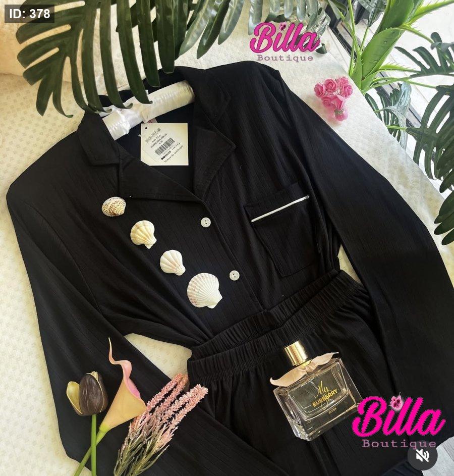 بيجامة باللون الاسود قطن خريفي بنطلون🖤
