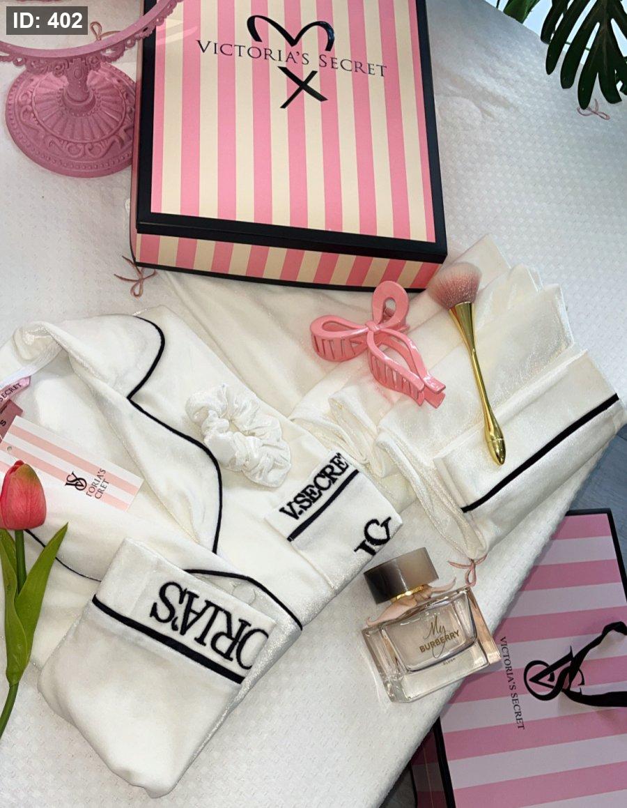 بيجامة فيكتوريا سيكريت باللون الابيض مخمل والكواليتي🔥مع بوكس💕