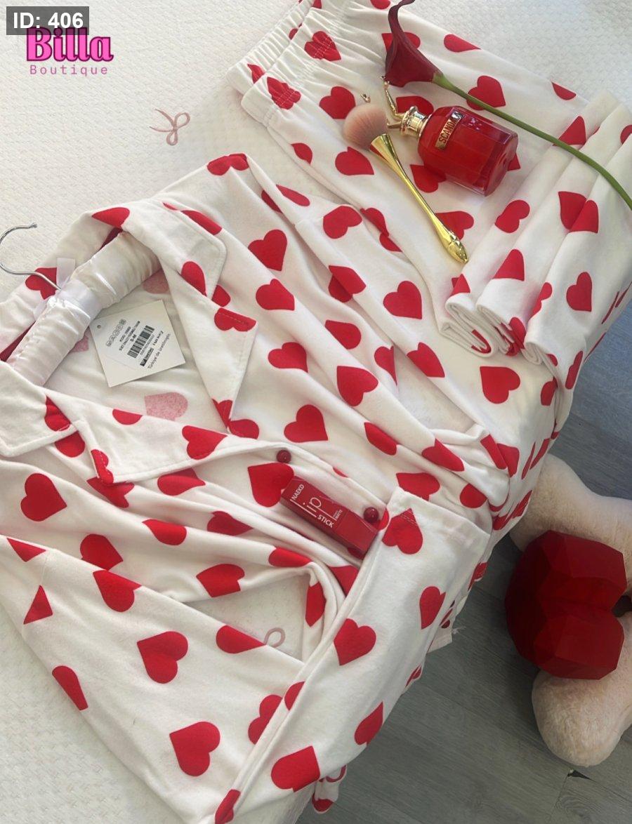 بيجامة خريفية منقشة قلوب مخمل ناعم❤️