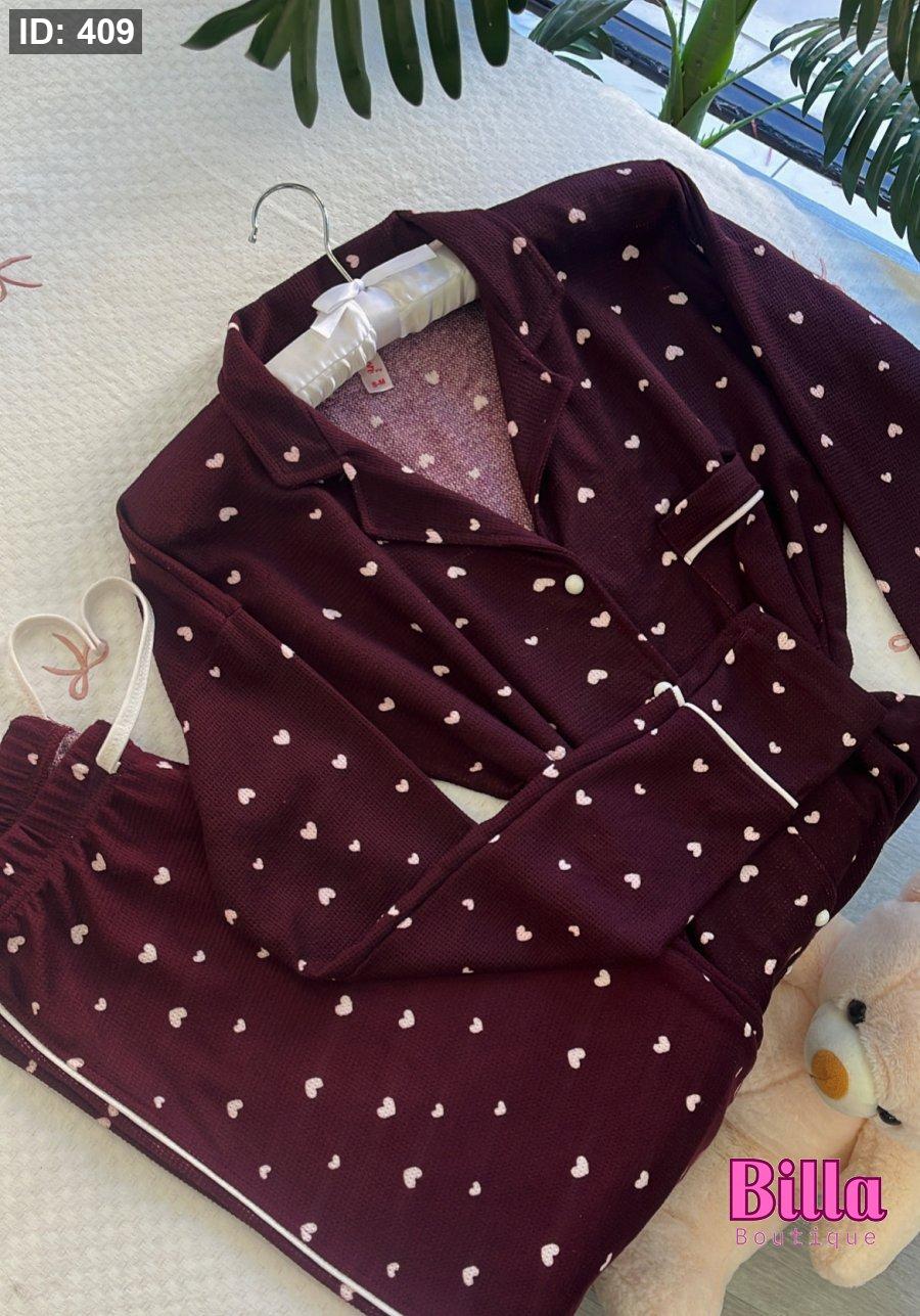 بيجامة خريفية شتوية بلونها المنبز منقشة قلوب باللون الابيض والكواليتي🔥