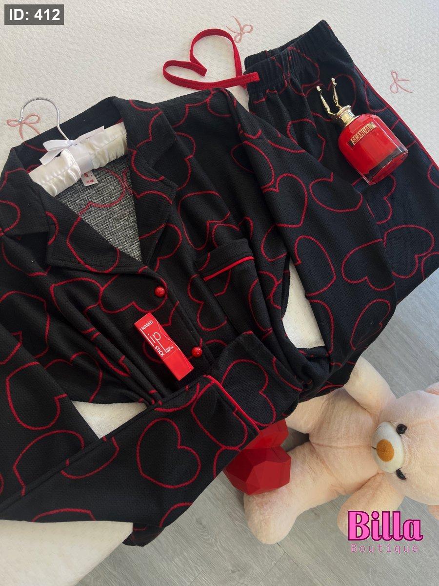 بيجامة خريفية شتوية منقشة قلوب والكواليتي🔥