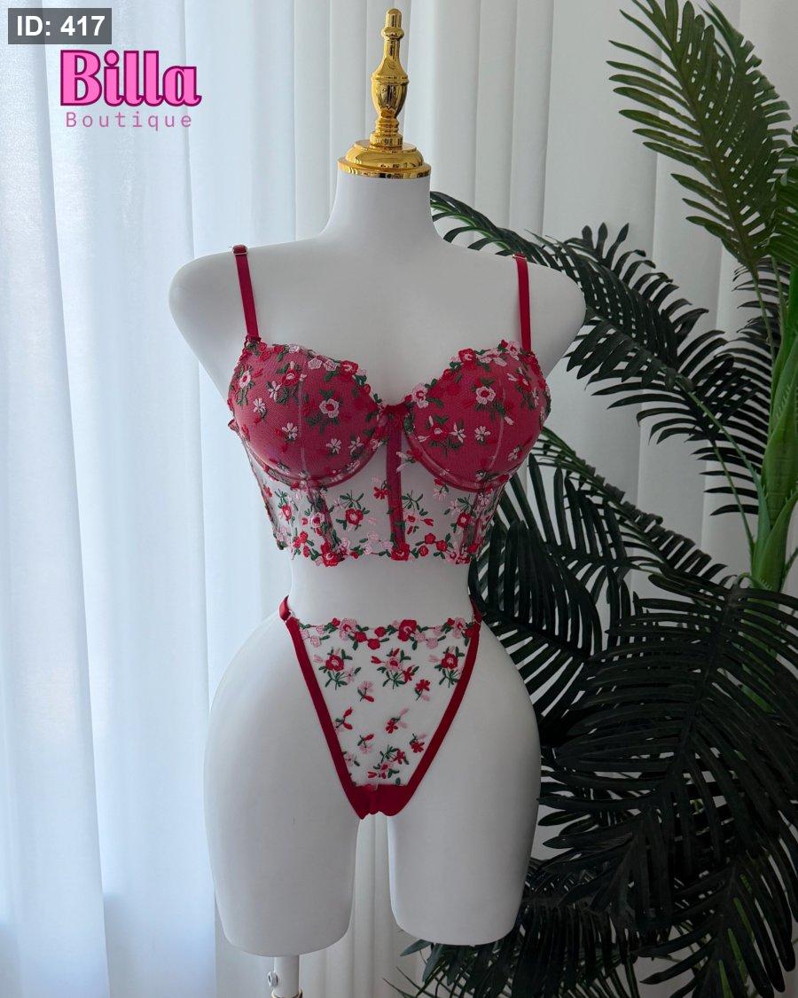 طقم داخلي دبل بوش منقش ورد احمر ❤️