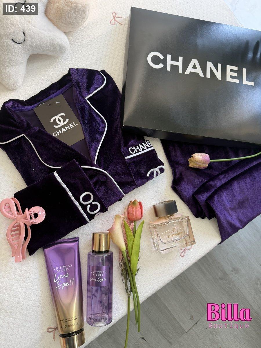 بيجامةChanel مخمل مع بوكس باللون الموف💜
