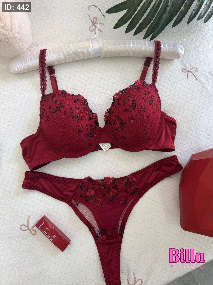 طقم داخلي بوش عادي منقش ورد باللون اللرغندي❤️