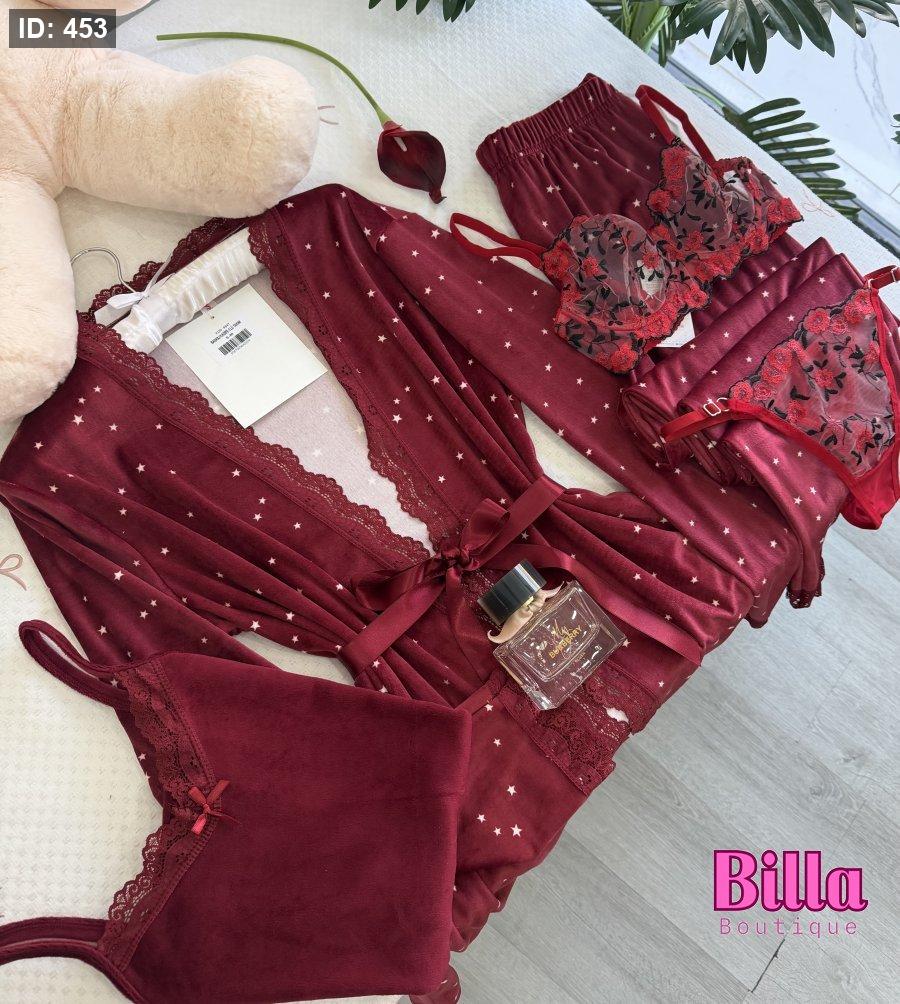 بيجامة ثلاث قطع باللون الأحمر مخمل فرنسي والكواليتي ❤️‍🔥🔥😍
