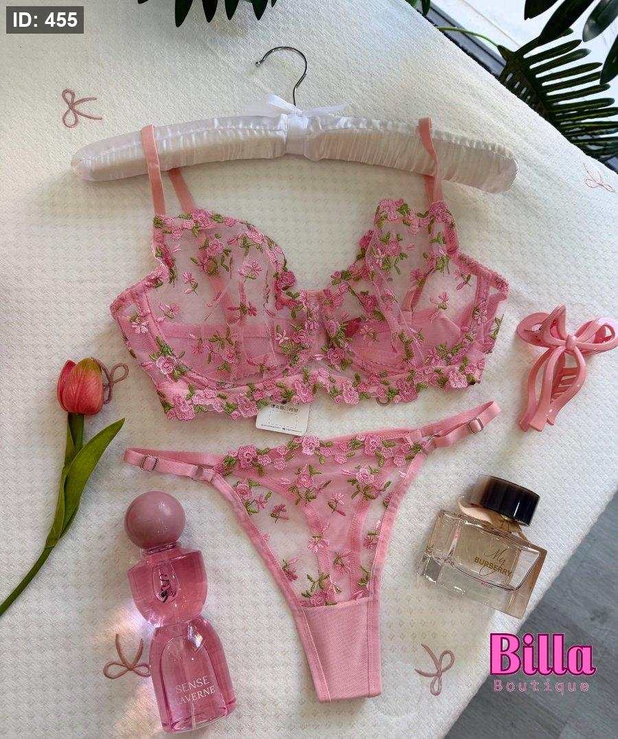 طقم داخلي باللون الزهري منقش ورد💕🌸