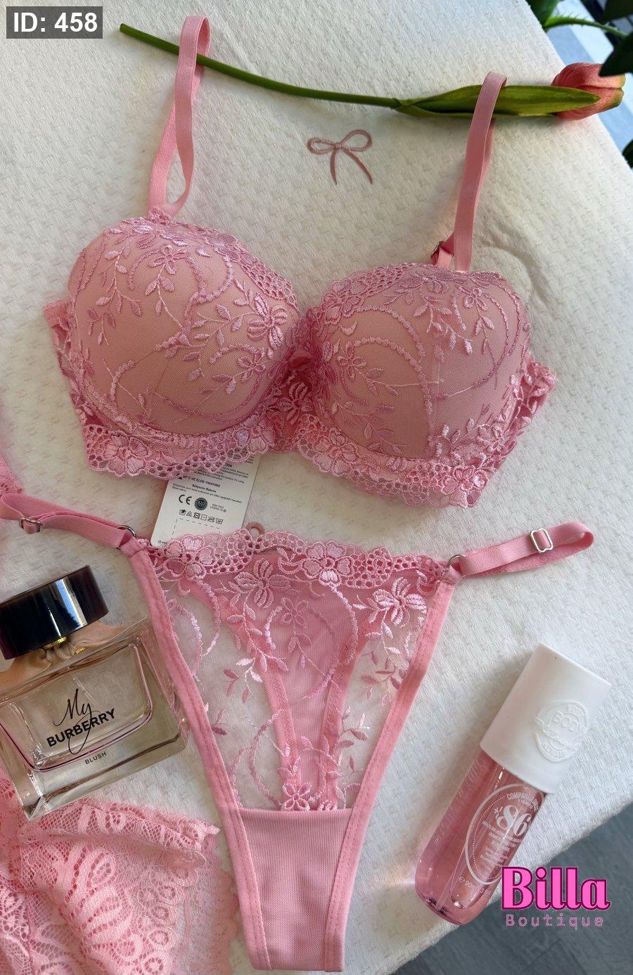 طقم داخلي منقش باللون الزهري دبل بوش💗💓💕