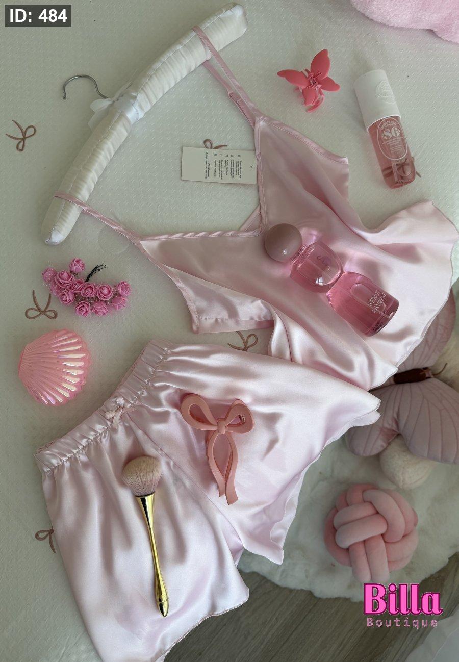 بيجامة شورت ستان حرير ناعم باللون الزهري🥺💗