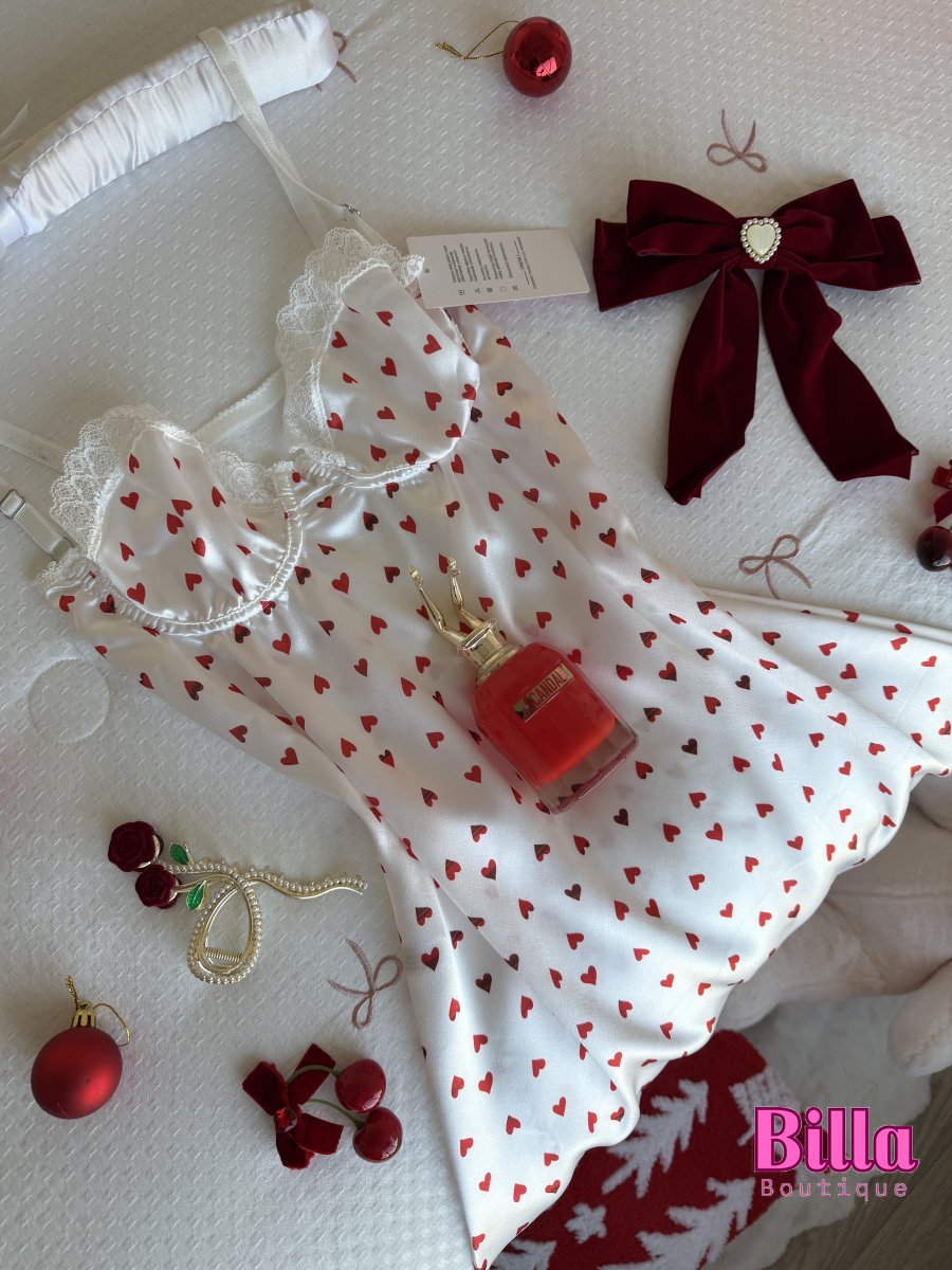 فستان ستان ناعم منقش قلوب والكواليتي بتسطل🥹🥹❤️‍🔥❤️‍🔥❤️