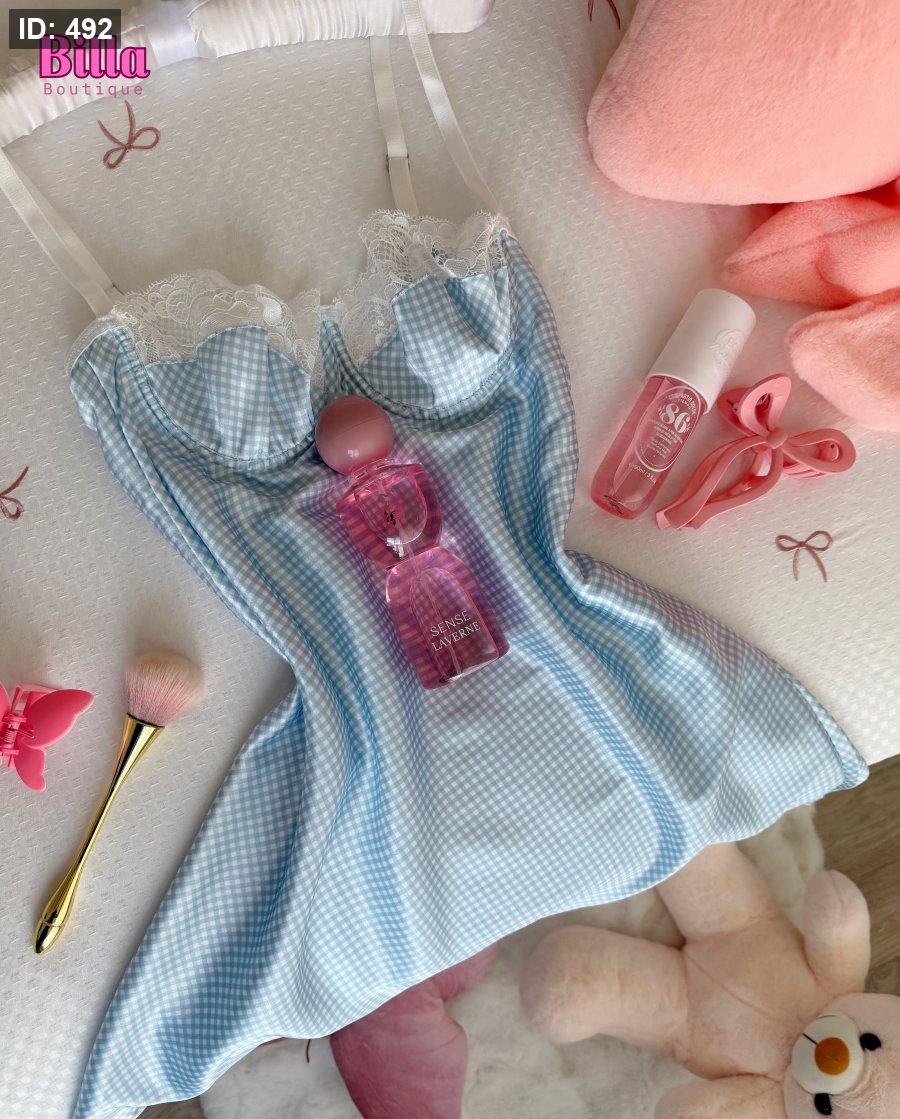 فستان كروهات ازرق ستان ناعم بسطل😭🫰🩵💙