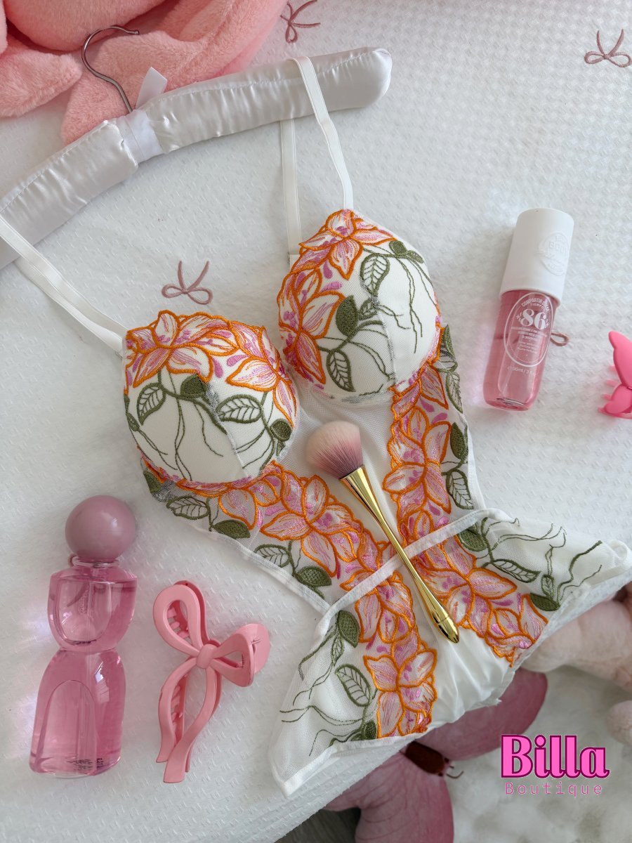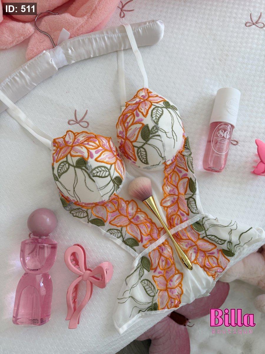 بودي سوت دبل بوش باللون الأبيض منقش 🌸 💐🏵️
