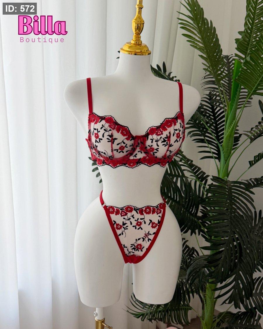 طقم داخلي منقش ورود احمر 🥹❣️