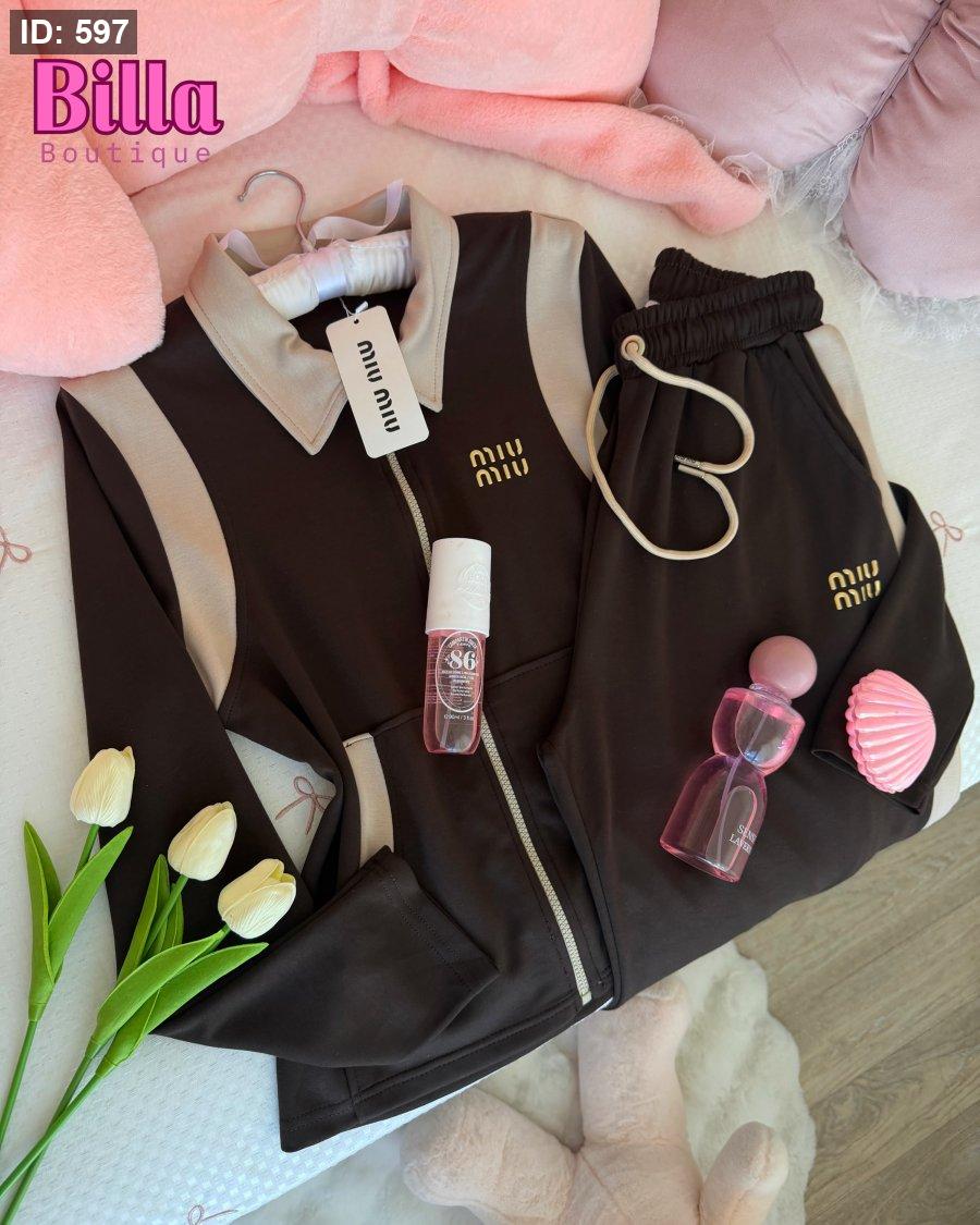 ترينينج Miu Miu بني × بيج – أناقة دافئة بذوق عالي ✨