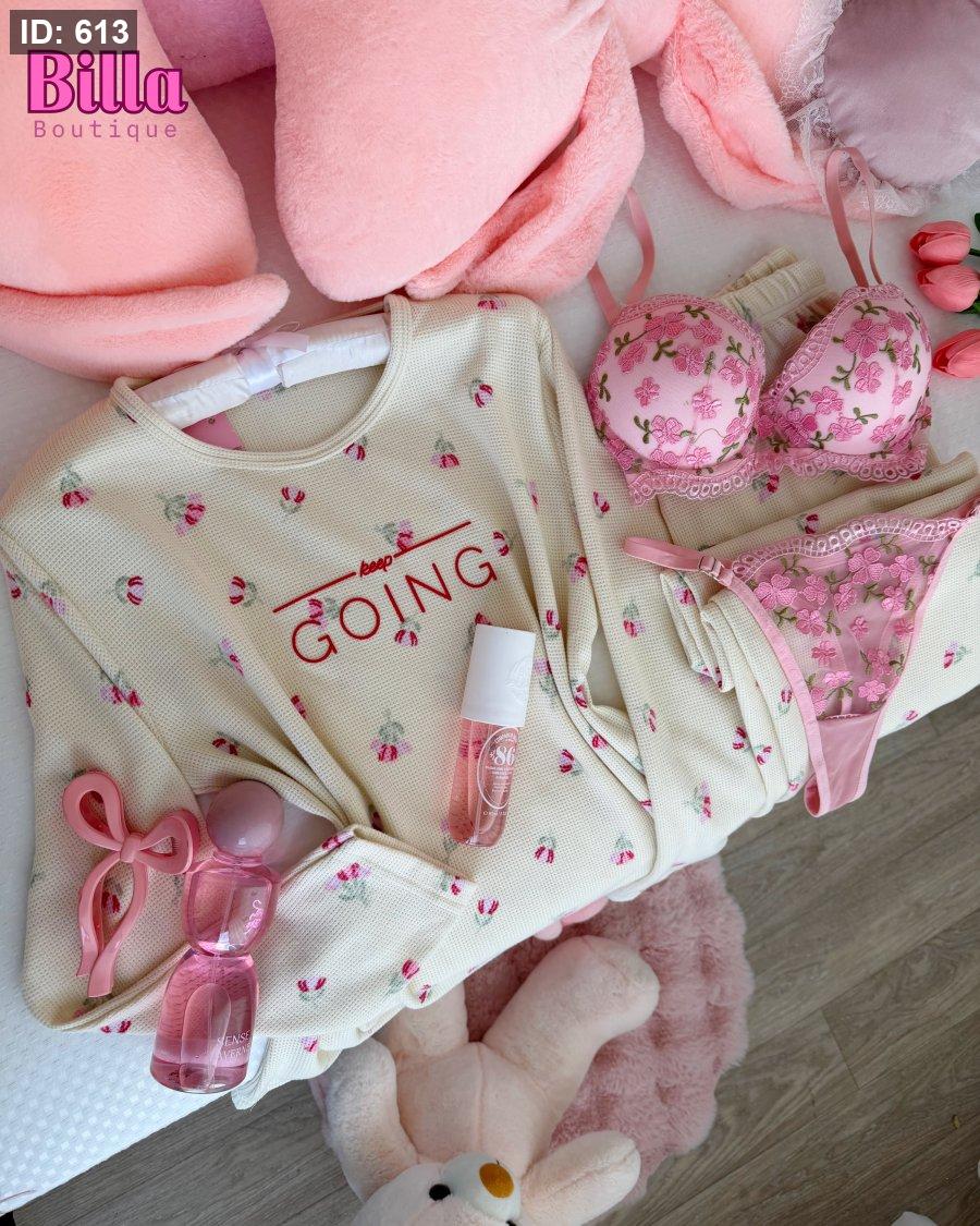 بيجامة ربيعية منقشة ورد توليب باللون الزهري والكواليتي🔥😭💕