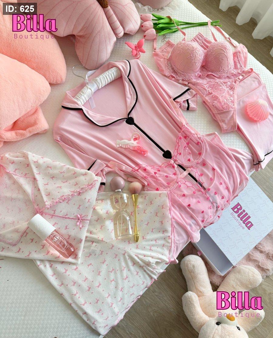 بكج البينك 💗🥹🌷بتكون من سبع قطع(بيجامة بنطلون وبيجامة شورت وطقم داخلي وسوت)🥹