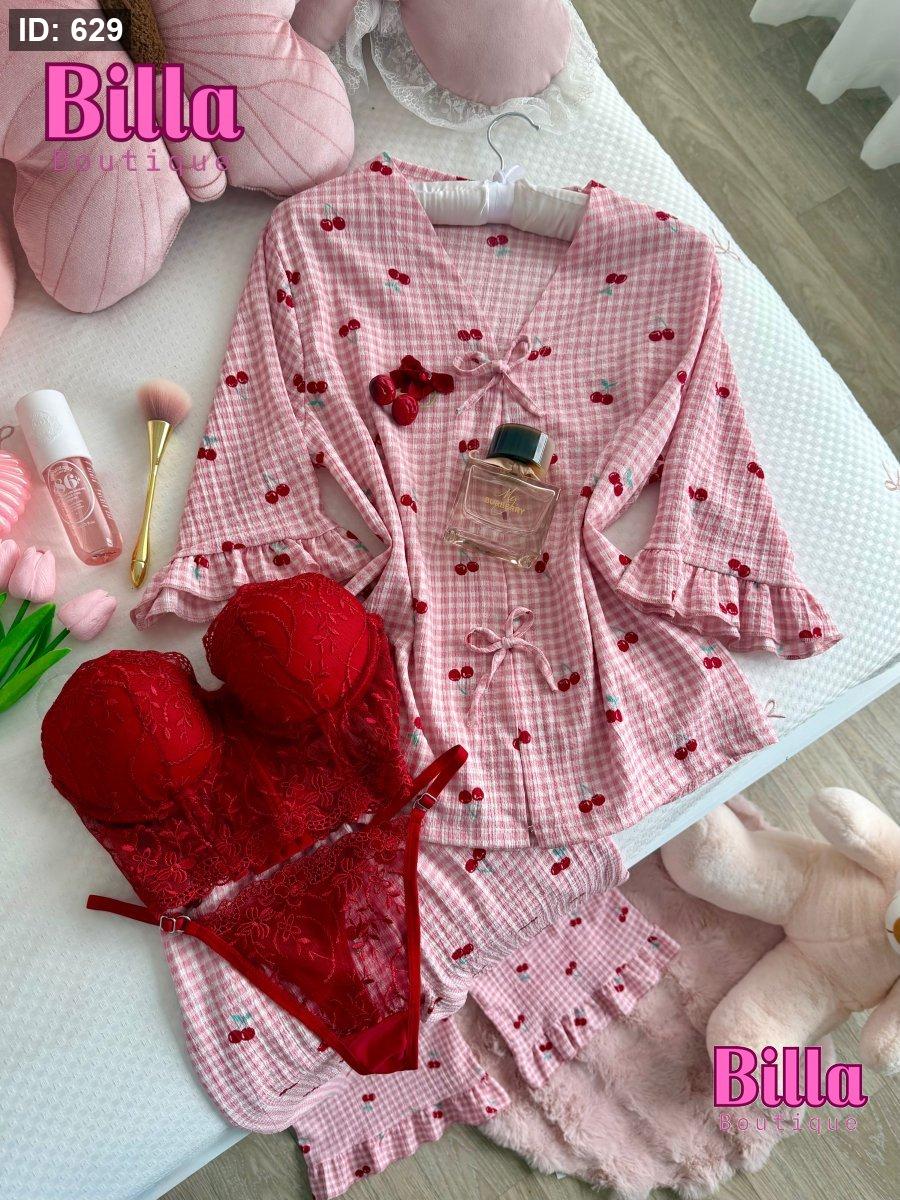 بيجامة نقشة الكرز كروهات ثلاث ارباع بتفصيلتها الصيفية والكواليتي🔥😭💗